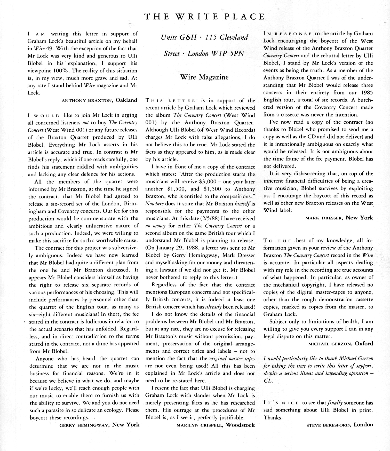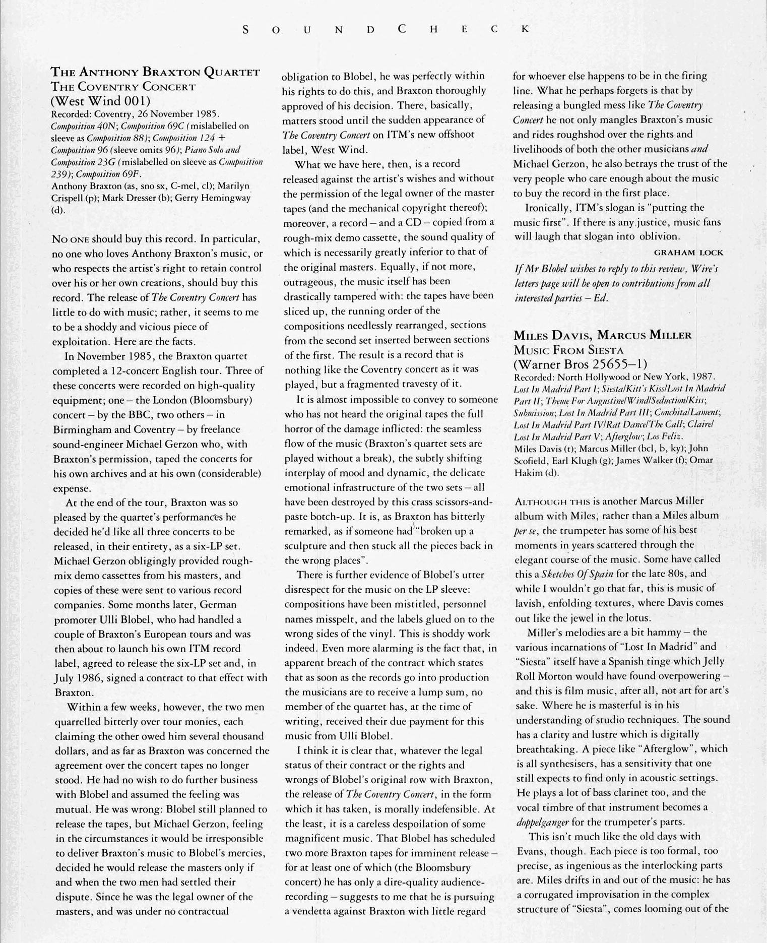 Dwight Andrews (ts, fl, cl), Roscoe Mitchell and Wallace McMillan (as), Anthony Braxton (as, fl, cl, cbcl),