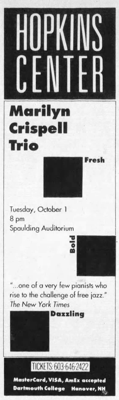 - 25.04.01 - Spontaneous Composition Ensemble: Marilyn Crispell (p), unknown others / 5:00pm, Bard College, Red Hook, NY