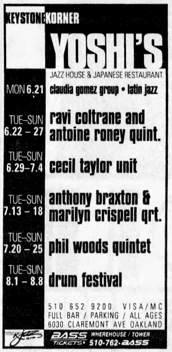 Marilyn Crispell (p), Julius Hemphill (ts), Marty Erhlich (as, cl), Thulani Davis (poetry),