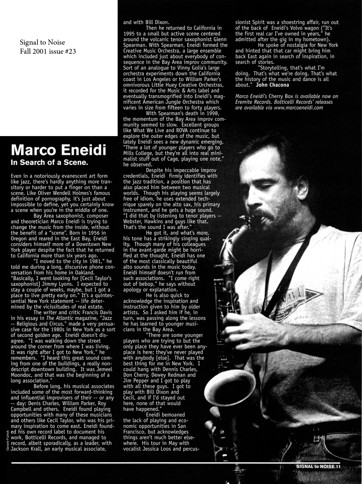 Joe Morris, May 25, 2016: “Rest in Peace Marco Eneidi. Soul Brother. Beautiful artist, sweet friend.”