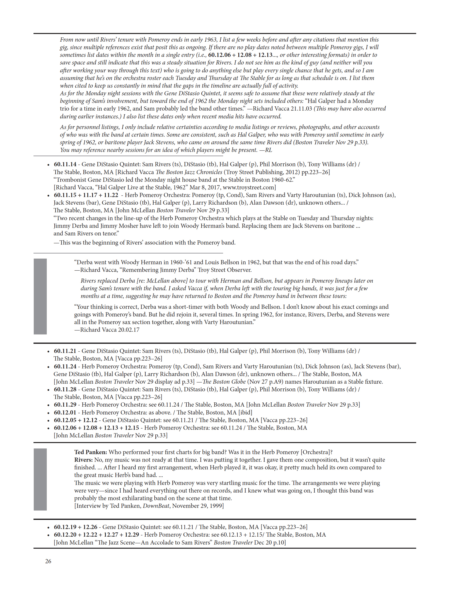 Also listed in chronological order within this sessionography and its session entries are play-dates with no known recorded media.